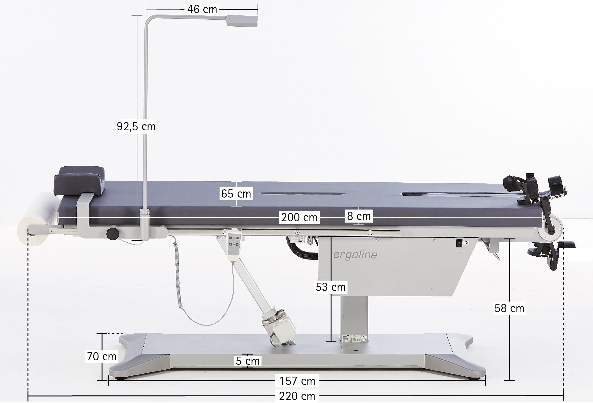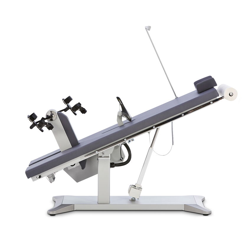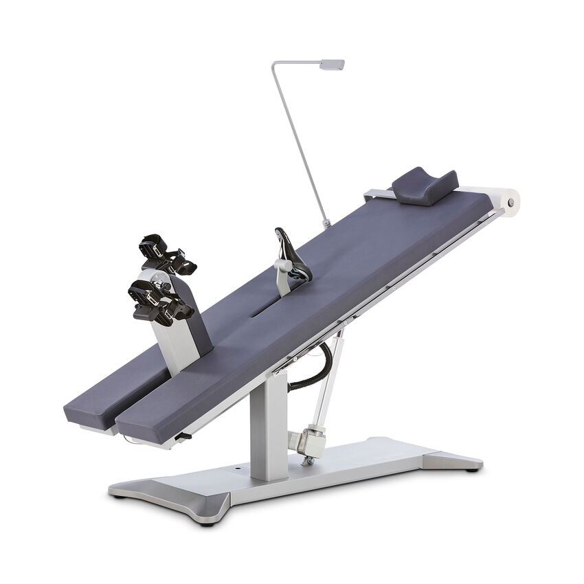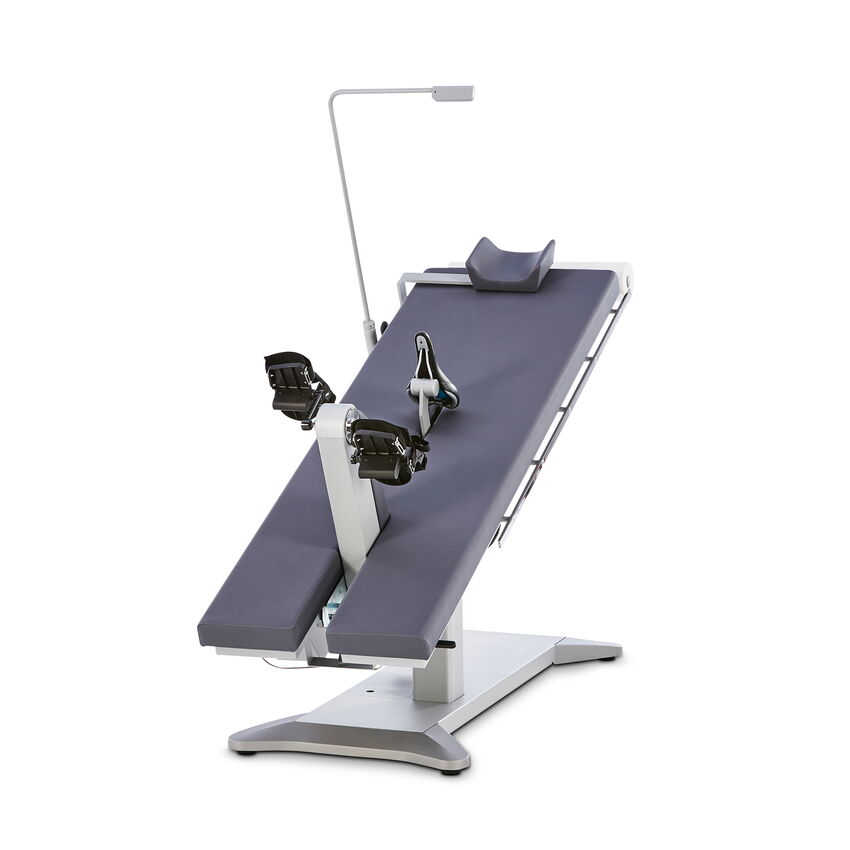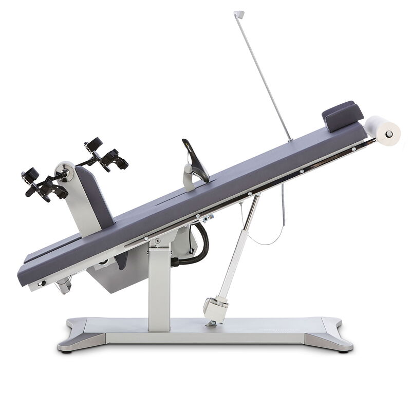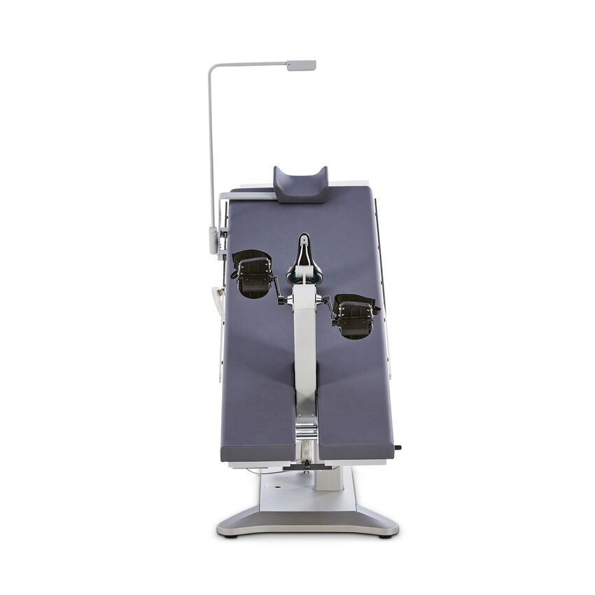 The comfortable headrest with lateral support can be moved over a wide range for easy adjustment to the patient’s body size. The laterally attached speed display is easy to read in any position and can be folded away when not in use.