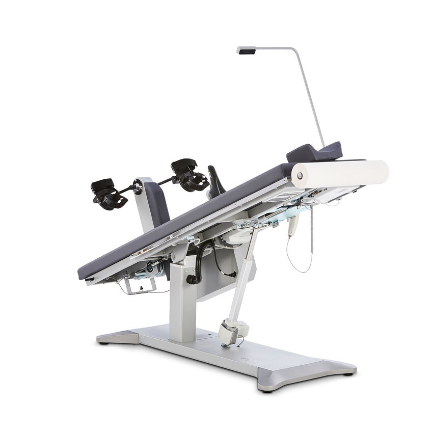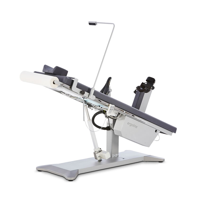 The examination position and seat settings can be conveniently adjusted via remote control; a wireless version is available on request.