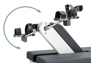 The specially developed pedal shoes secure the patient’s feet at the ergometry unit and reliably prevent slipping off the pedal cranks, even in lateral position.